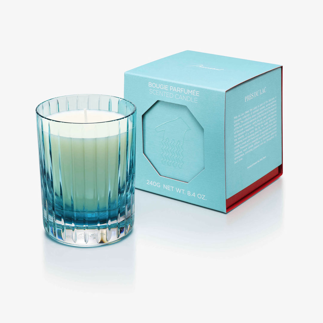 Près du Lac (Near the Lake) is part of the Baccarat 4 Elements collection of scented candles, spring-summer edition. The collection draws inspiration from the alchemy of the four essential elements of life that are at the heart of all Baccarat creations – earth, fire, air, water – and features four signature fragrances. The Près du Lac candle captures the serenity of a sunny day by the water, diffusing a refreshing scent blending green tea, mint and musk. Each candle is made with French wax of vegetable and mineral origin. Presented in a beautiful upcycled Baccarat crystal container, each candle diffuses a distinctive olfactory atmosphere, providing pleasure and joy throughout its burn time.