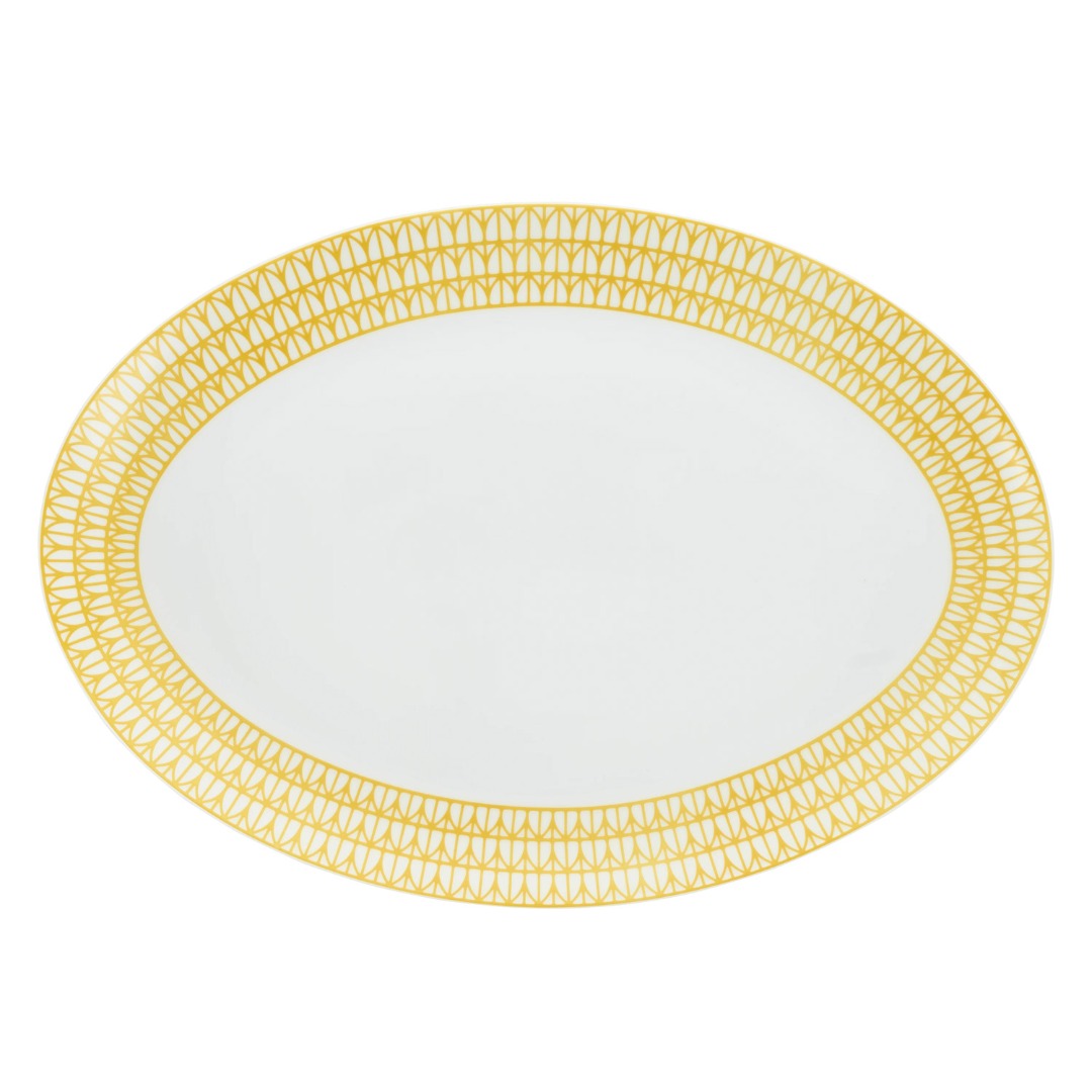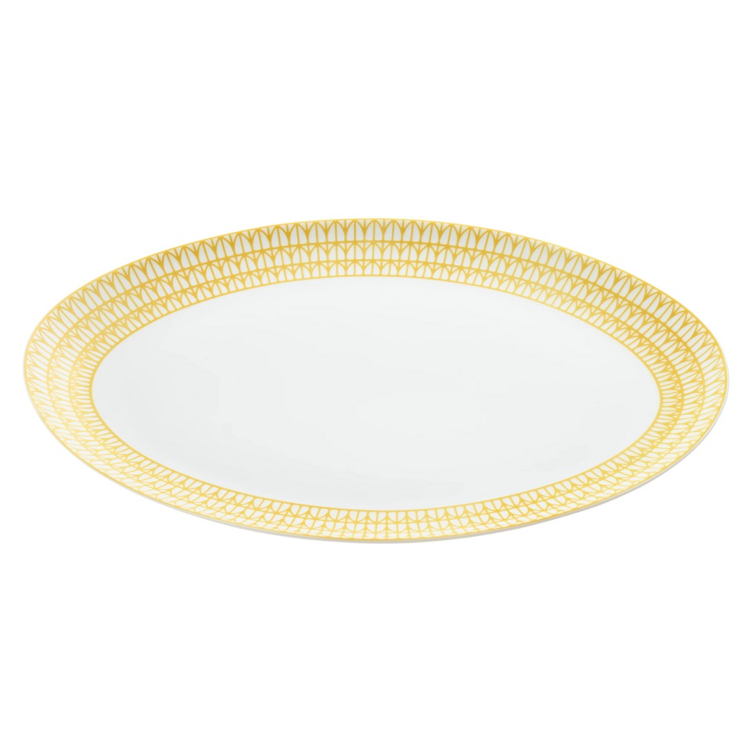 Oval platter in Limoges porcelain with decoration from the Malmaison Riviera collection, ideal for presenting main courses, this oval platter elevates everyday meals and special occasions with refined elegance.