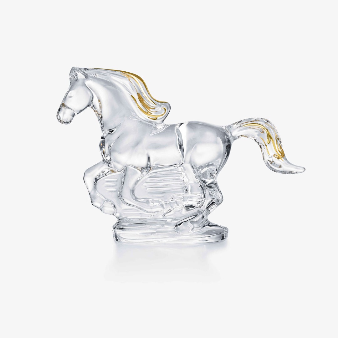 Baccarat célèbre l’année du Cheval avec une création pleine de fougue. Né du savoir Faire des artisans de la manufacture, le cheval Baccarat est sculpté dans son élan, la crinière au vent, incarnant l’audace de ceux qui tracent leur propre voie. Imaginée par l’artiste Allison Hawkes, l'œuvre saisit la puissance et l’allure racée du cheval, magnifiée par les reflets de lumière. Jaillissant de la pureté du cristal, le Cheval Baccarat rend hommage à l’énergie flamboyante du septième animal du zodiaque chinois et illumine les aspirations de chacun.